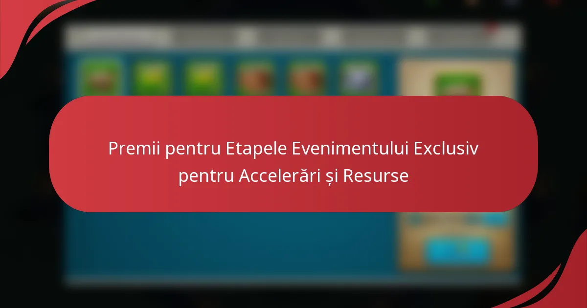 Premiile de etapă ale evenimentelor sunt recompense esențiale pe care jucătorii le pot câștiga prin atingerea unor obiective specifice în timpul evenimentelor din joc. Aceste premii includ, de obicei, acceleratoare valoroase și resurse care îmbunătățesc semnificativ experiența de joc, permițând îmbunătățiri și progrese mai rapide. Prin participarea la evenimentele de etapă, jucătorii pot accesa o varietate de recompense care contribuie la o experiență de joc mai eficientă și competitivă.